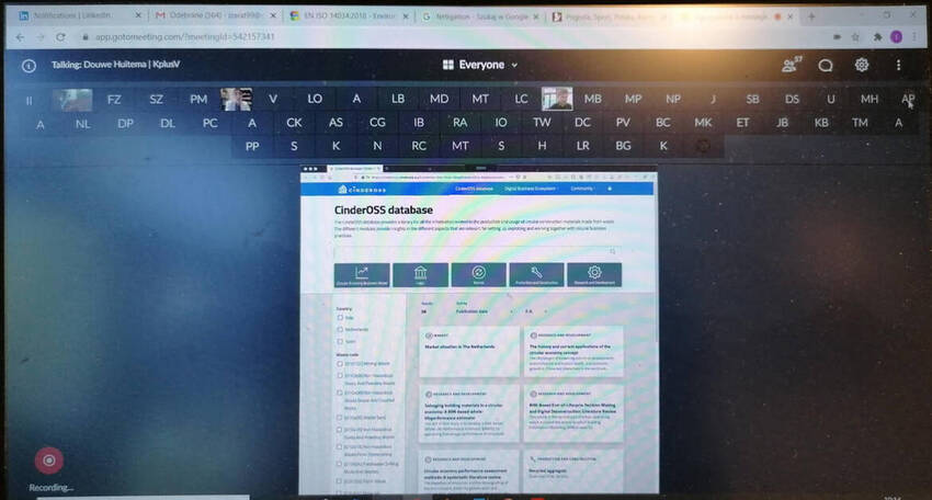 Yesterday's webinar "New digital services for circular economy in construction sector" was an opportunity to present the first version of the CINDERELA digital platform CinderOSS and its functionalities to a group of about 60 stakeholders and to get to know what its potential users think about it.